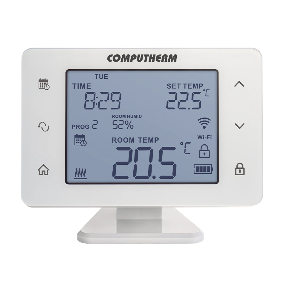 Стайният термостат COMPUTHERM Q20RF WIFI е специално проектиран за управление на системи за отопление и охлаждане. В допълнение, термостатът е подходящ и за управление на електрически и електронни устройства, които могат да се включват и изключват чрез прекъсване и възобновяване на захранването.